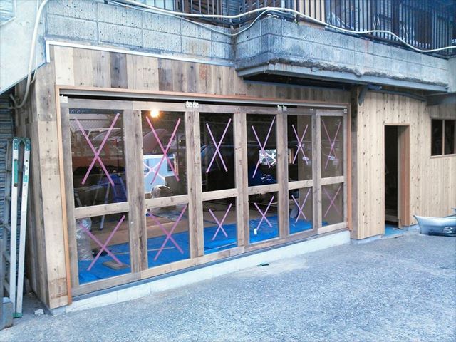 ボディーショップKさんのこだわり特性板戸です。 金物以外は僕のお手製です。 イメージ通りに作れるか心配でしたが気にいって頂けて安心しました(^^)b |